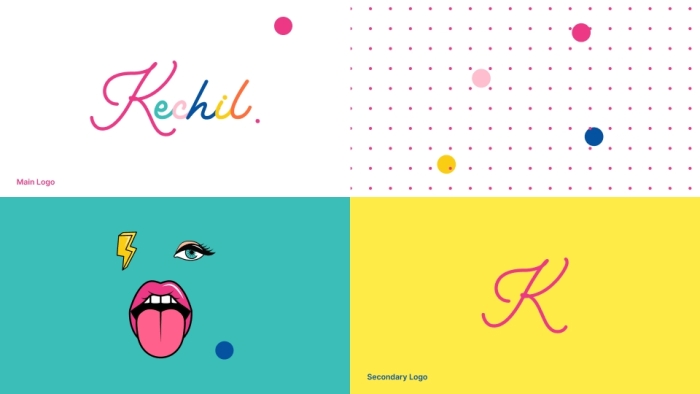 At the heart of the brand is the main Kechil logo, featuring a fluid, handwritten script in a rainbow gradient—symbolising creativity, diversity, and joy. The secondary logo, a simple elegant “K,” offers a minimal yet stylish alternative for compact use.
